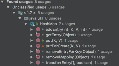 hash方法 我们拿JDK 1.7的HashMap为例,其中定义了一个final int hash(Object k) 方法,其主要被以下方法引用。