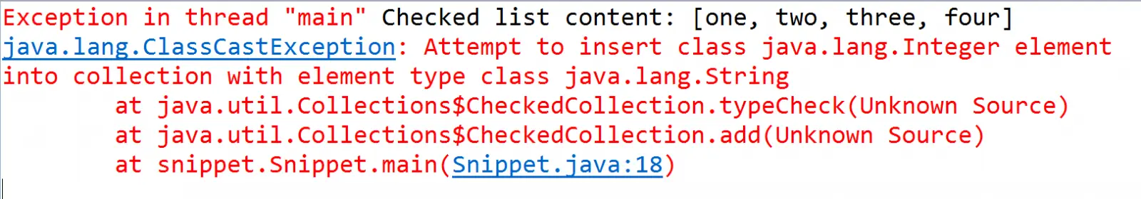 //throws ClassCastException