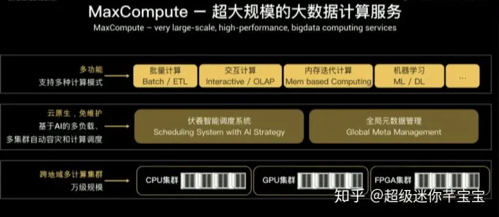提供大数据计算服务的MaxCompute,支持着阿里集团几乎99%的数据存储以及95%的计算,是历年双11背后的核武器。2018年双11,MaxCompute单日处理超过600PB,平稳支撑电商混布单元在线流量洪峰12万笔/s交易,稳定承载45%导购流量,为双11交易峰值提供了有力保障和平滑支撑。