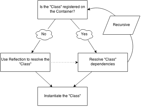 类,容器将会抛出 BindingResolutionException ,尝试从绑定解析类之后,返回到反射方法并解析所有依赖项。