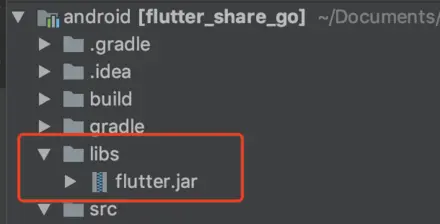 在项目根目录建立一个libs文件夹,用来存放flutter库,flutter库可以到你电脑的flutter sdk路径中寻找:
