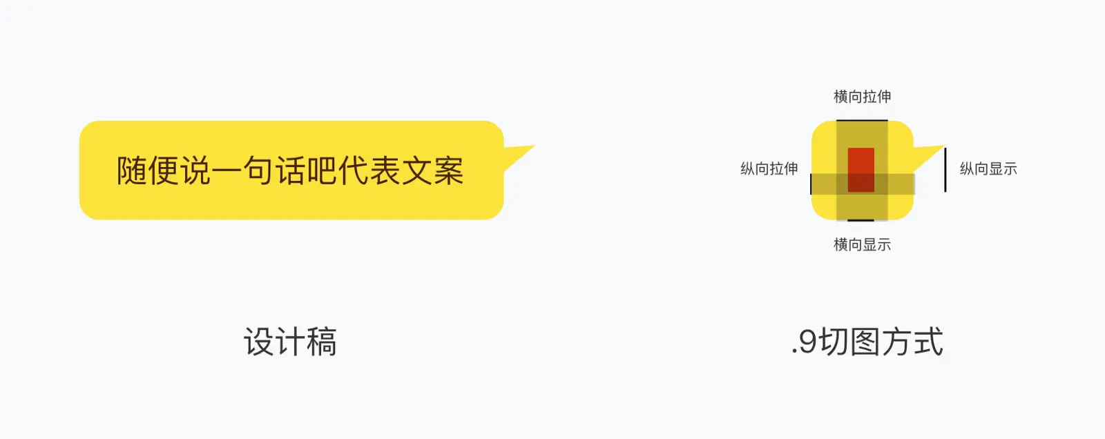 按照右图切图方式里标注出拉伸和显示的位置及尺寸就好~