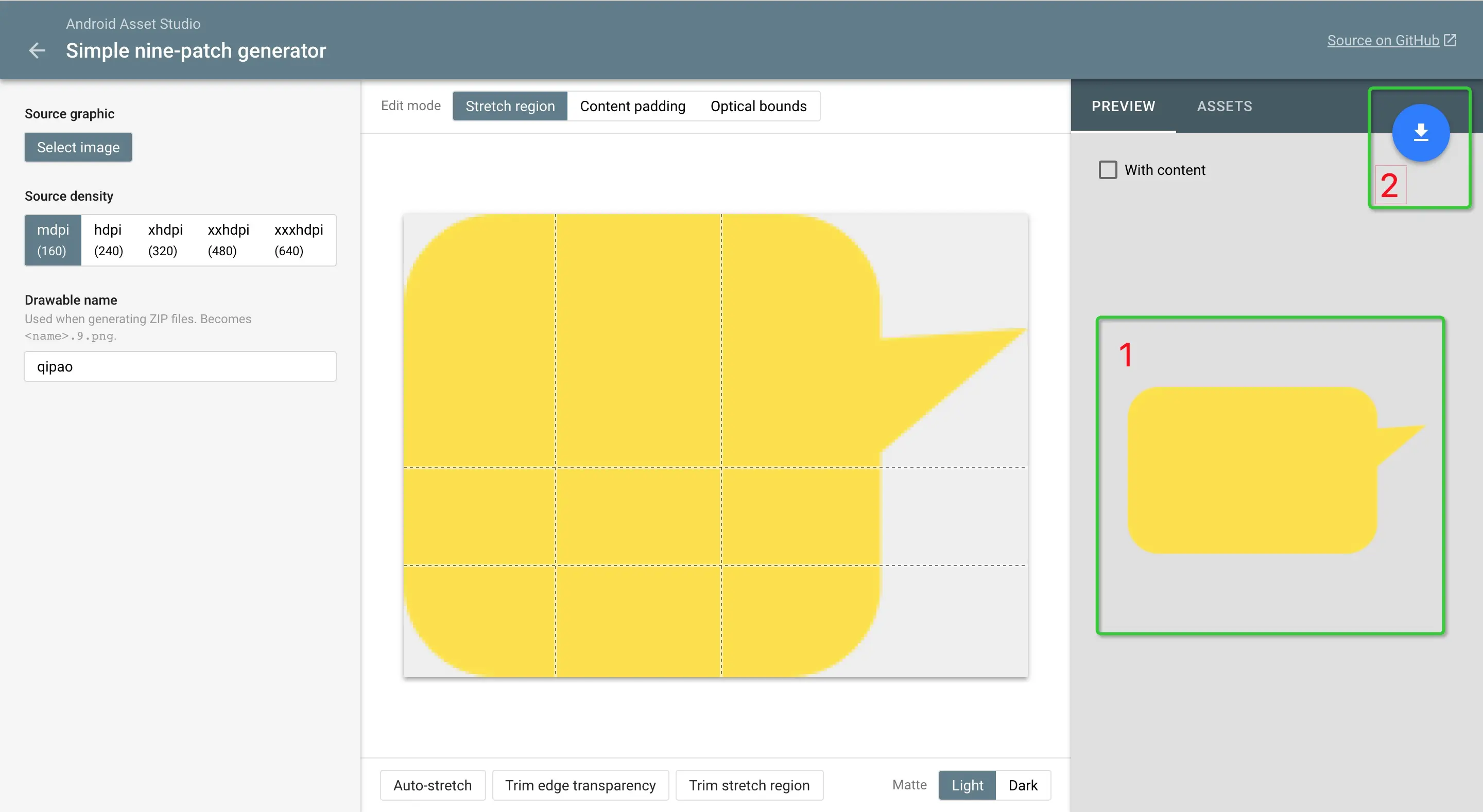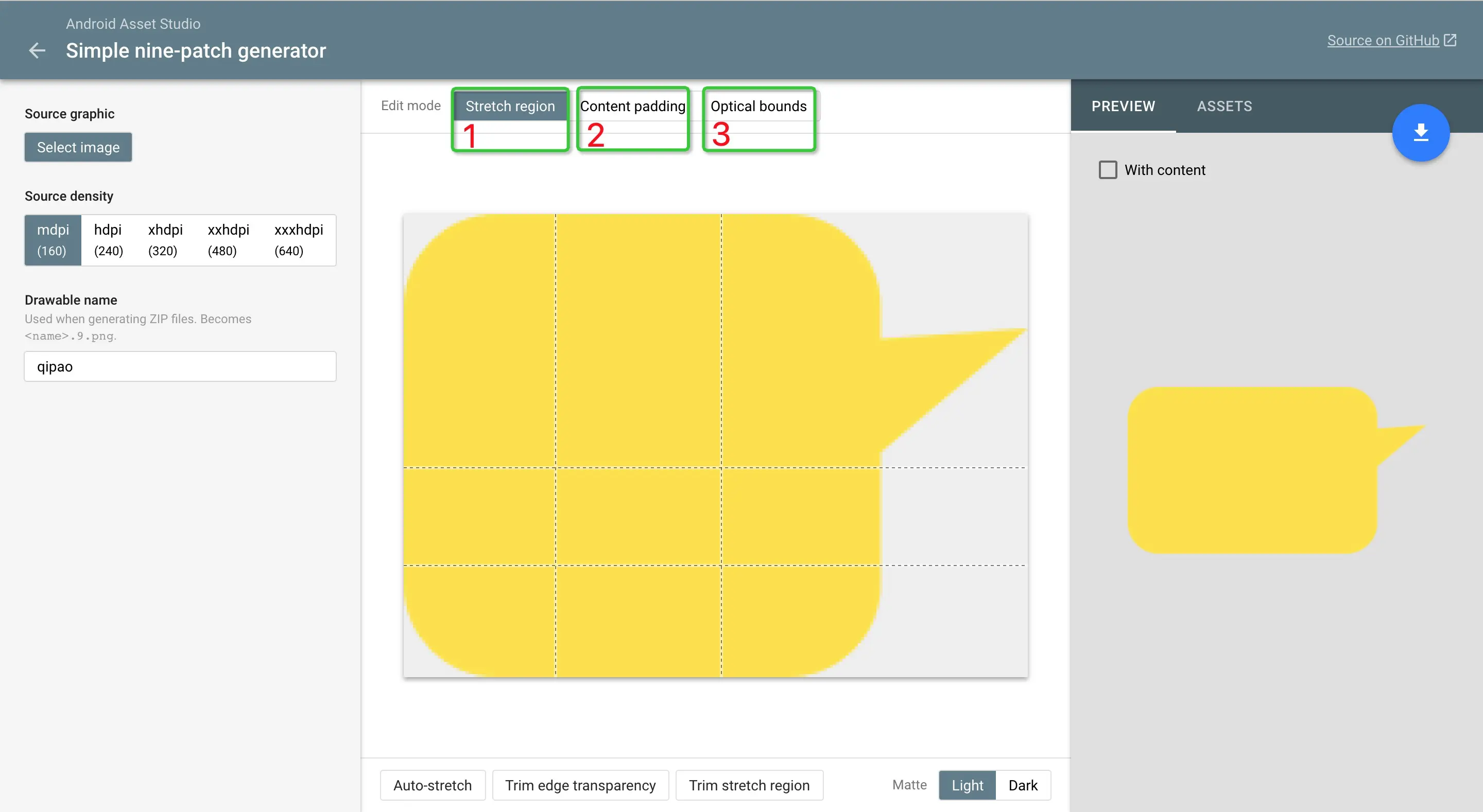 1、将png图片标注好给到开发让开发用Android Studio自带的制作工具去切