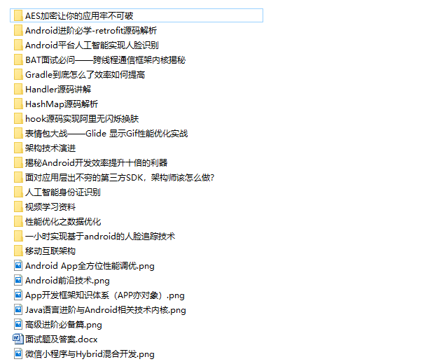 加群免费领取安卓进阶学习视频,源码,面试资料,群内有大牛一起交流讨论技术;点击链接加入群聊【Android技术交流】:https://jq.qq.com/?_wv=1027&k=55YgqsK。 (包括java基础与原理,自定义控件、NDK、架构设计、混合式开发(Flutter,Weex)、性能优化、完整商业项目开发等)