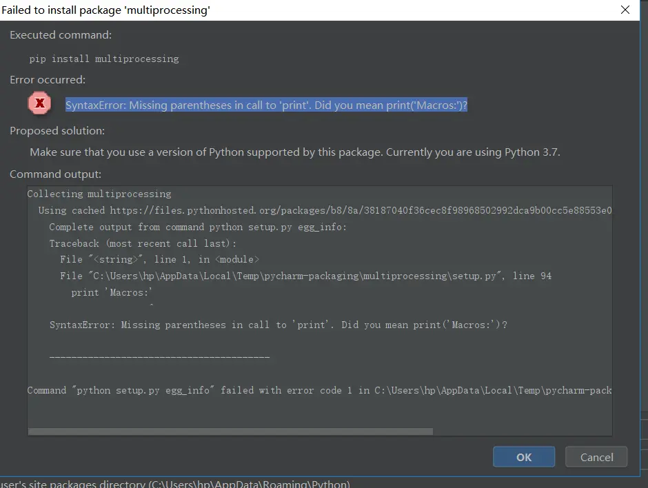 1、以上问题,百度给的方法:multiprocessing 在Python3.X中不属于第三方库,你可以之直接调用from multiprocessing import pool 进行检验看是否存在,还有一种解决办法就是在找到/multiprocessing/setup.py文件setup.py中的print修改为print(xxx)变成Python3支持的语法。