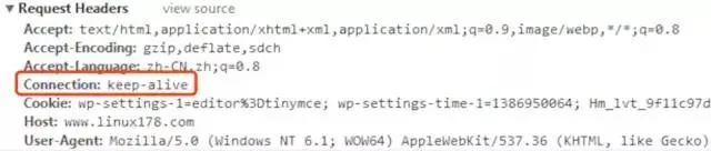 下图是一次 Http 请求报文头部信息,其中 Connection: keep-alive 意味着这次请求结束后不会关闭 TCP 连接。