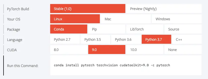 conda install pytorch torchvision cudatoolkit=9.0 -c pytorch