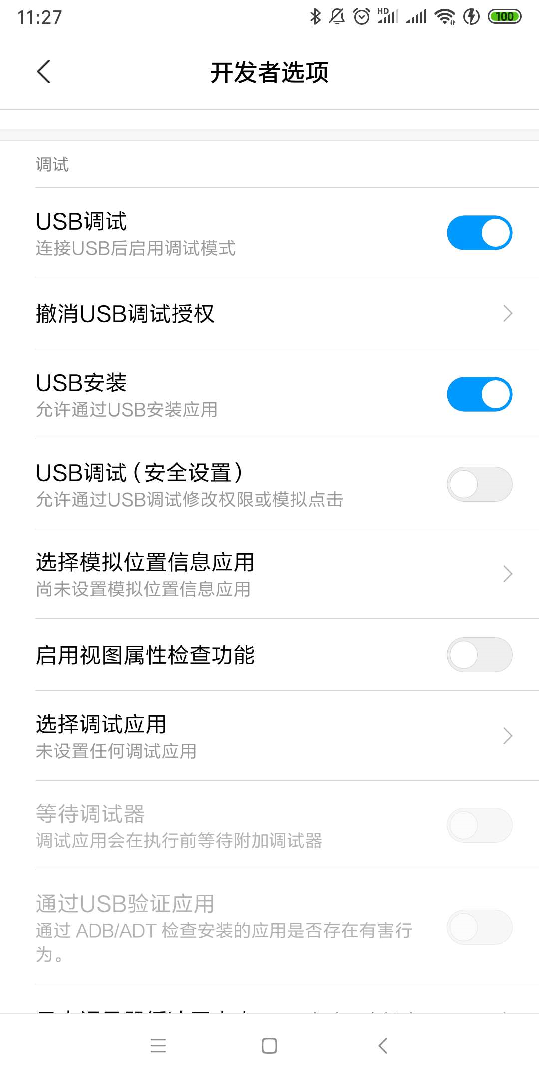 本机按上述调整后,依然无法安装,尝试清理缓存、构建项目、升级开发工具依旧,最后发现手机的USB安装是关闭的,打开后一切正常;