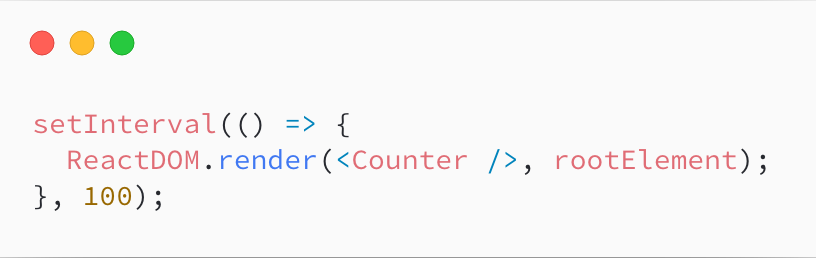 我们以 100ms 的频率去渲染 counter 组件,我们会发现 count 值一直没有更新