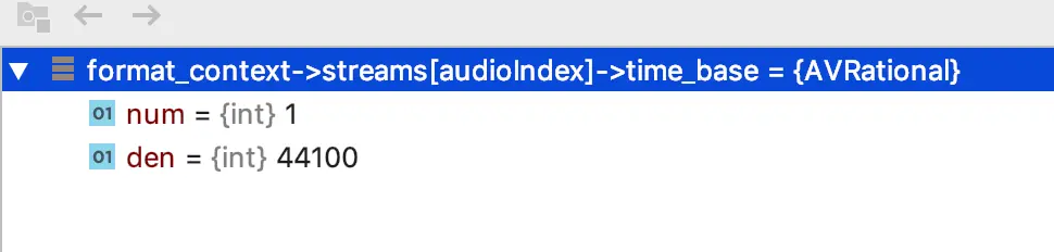 音频流的time_base里面正是记录了这个值,我们可以通过debug来看一下