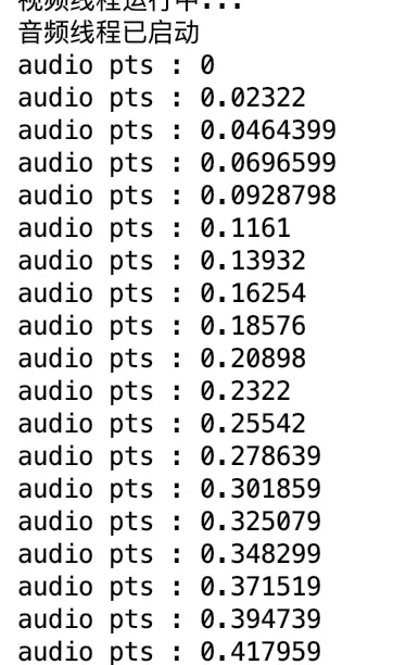 像我们例子中的这个视频,我们在解码一帧音频之后打印出来他的pts