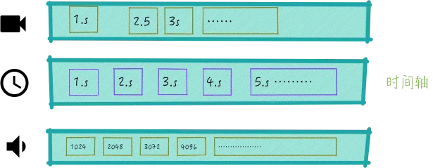 就像这样子,有一个时钟一直在跑,所谓基于音频、视频、外部时间 做为基准,也就是将那个轴的的时间做为时间轴的基准,另一个在轴参照主时间轴进行同步