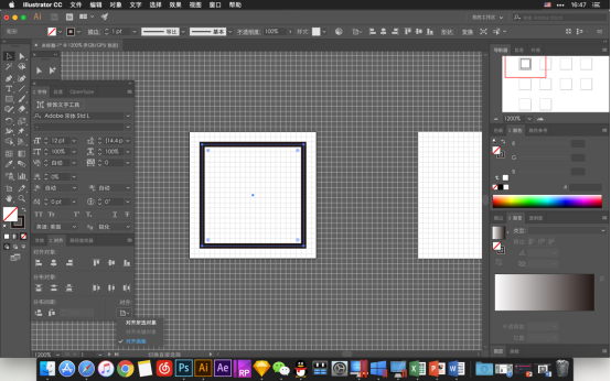 选择对齐选项中的对齐画板,使之与画板水平垂直居中对齐
