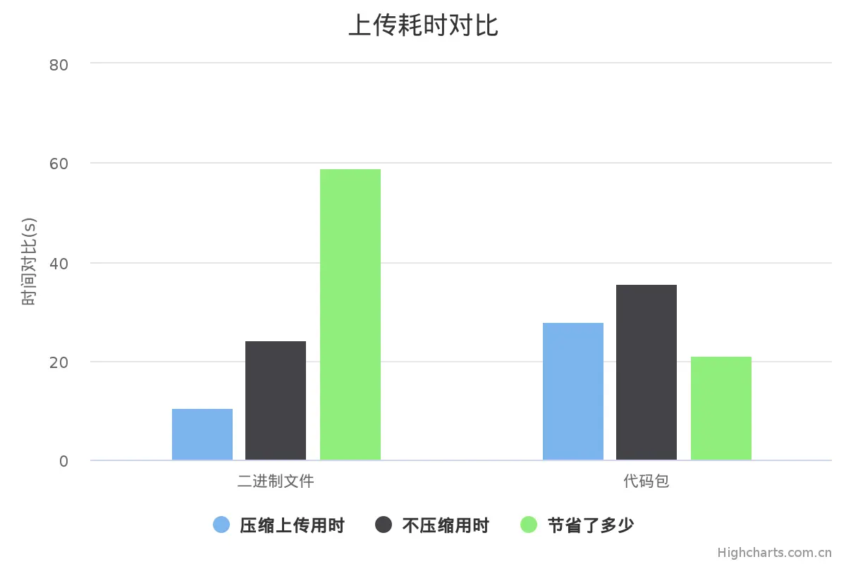 - 上传时间印证了上一条想法, 压缩二进制文件能节省更多上传时间,高达59%,但是无论那一种压缩方式,都能节省你很多时间