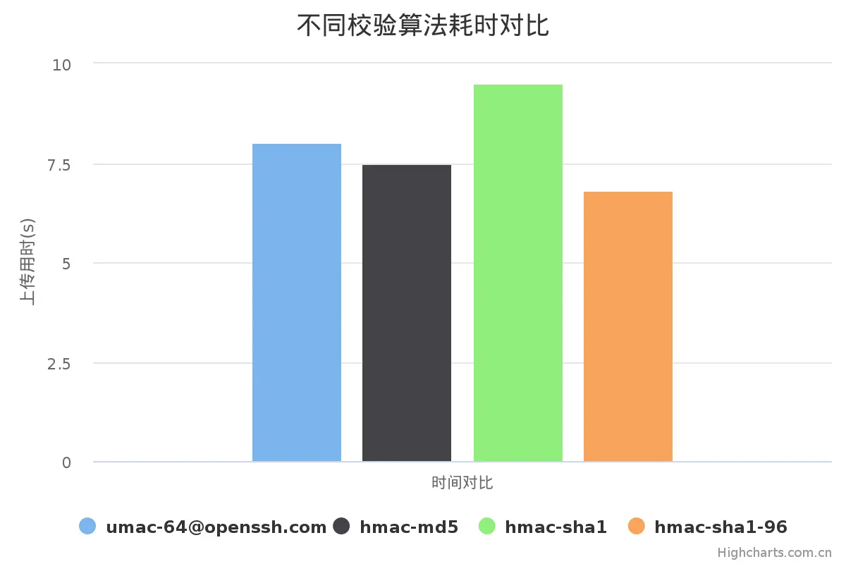 sshpass -p "${REMOTE_PASS}" scp -C -c aes128-gcm <-o MACs some-methods> ${ARTIFACT} root@${REMOTE_IP}:${REMOTE_WORKDIR}关于完整性校验证,默认情况下scp使用的是hmac-md5算法。根据前两个测试这次我默认
