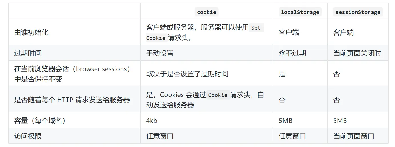 - cookie、sessionStorage和localStorage的区别。