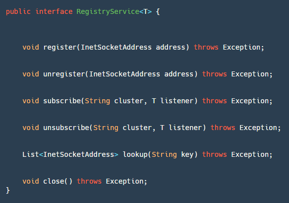 - unregister:服务端使用,一般在 JVM 关闭钩子,ShutdownHook 中调用。