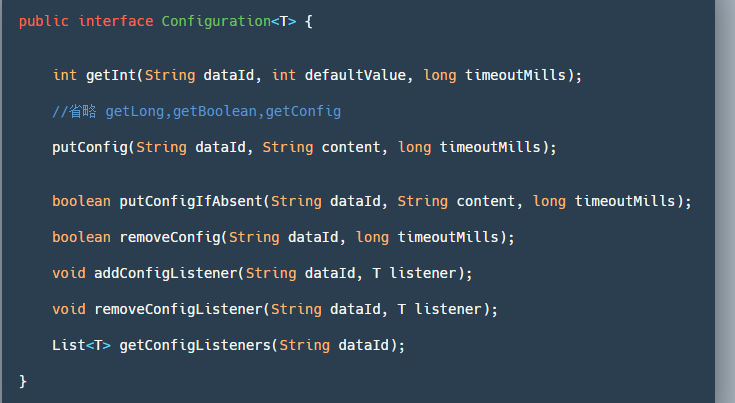 同样的在 Seata 中也提供了一个接口 Configuration,用来自定义我们需要的获取配置的地方: