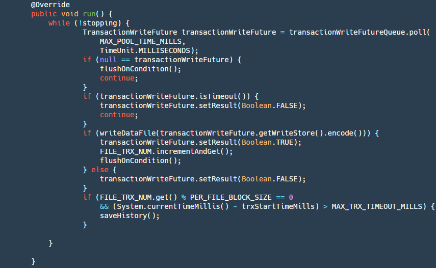 这里将一个 WriteDataFileRunnable() 提交进线程池,这个 Runnable 的 run() 方法如下: