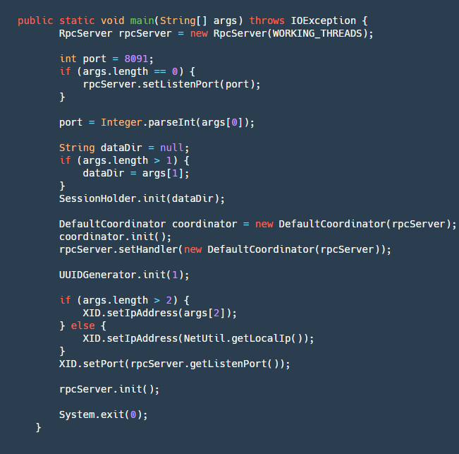 step6:将本地 IP 和监听端口设置到 XID 中,初始化 rpcServer 等待客户端的连接。