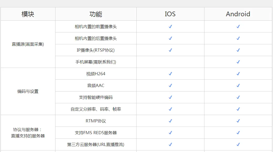 手机直播SDK功能详情