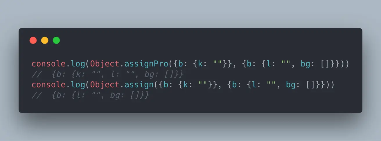 最终使用assignPro可以使拷贝结果达到预期~请注意,这个玩意并没有在生产中运用,大家抱着看看的心态就好了,当然如果能够继续完善,比如对数组的处理...最后应该还是可以投入生产使用的。