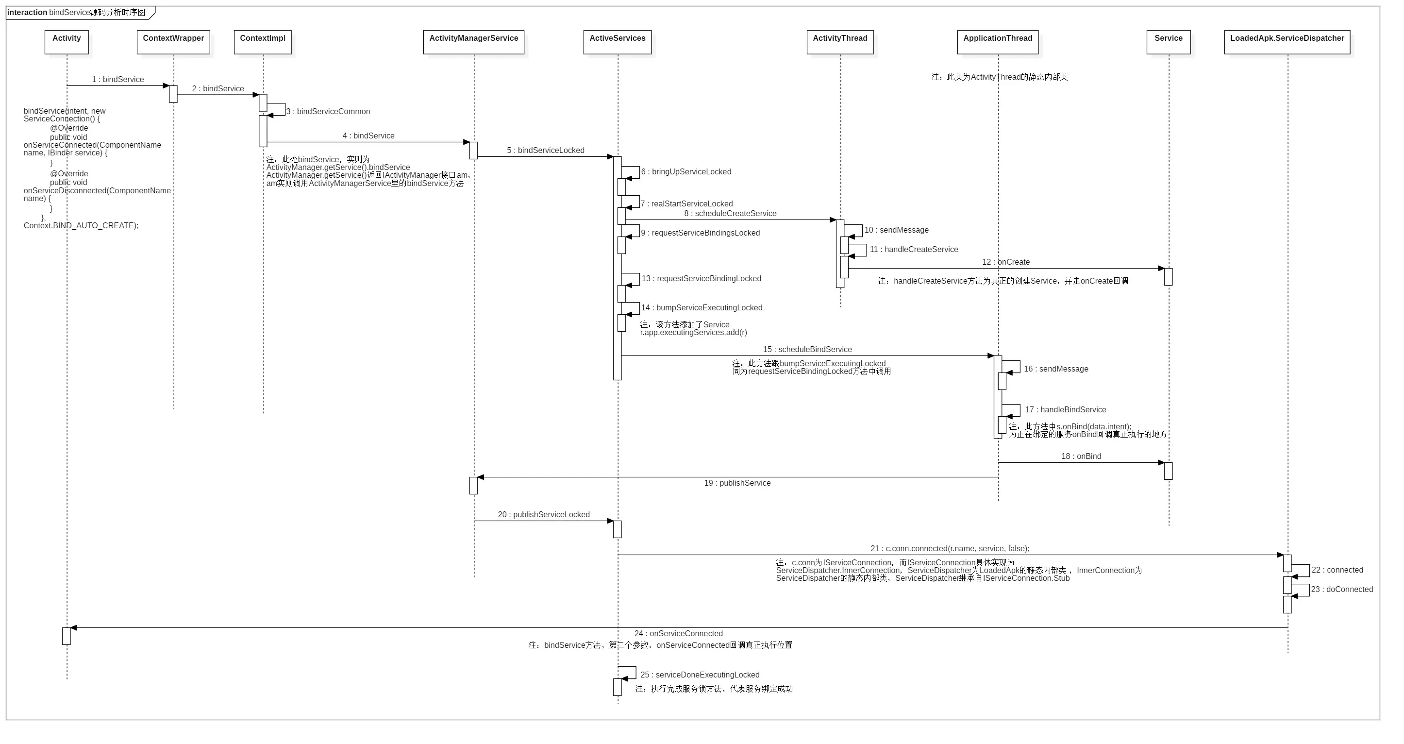bindService时序图中绑定服务操作是使用IBinder进行的,那么IBinder是如何获取的,什么时候初始化好的?从上述代码分析来看,只能从Stub()的构造方法入手,Stub构造方法一调用其父类构造方法顺便也会被调用,其父类构造方法代码如下: