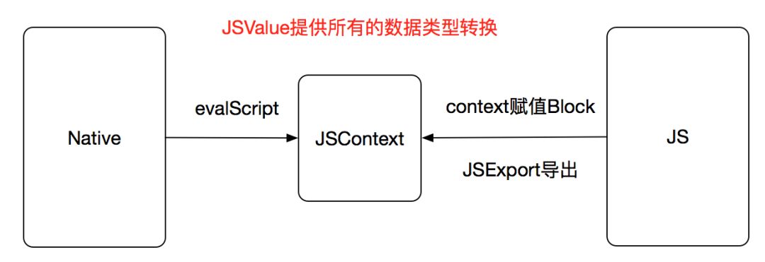 JSCore给App提供了JS可以解释执行的运行环境与资源。对于我们实际开发而言,最主要的就是JSContext和JSValue这两个类。JSContext提供互相调用的接口,JSValue为这个互相调用提供数据类型的桥接转换。让JS可以执行Native方法,并让Native回调JS,反之亦然。
