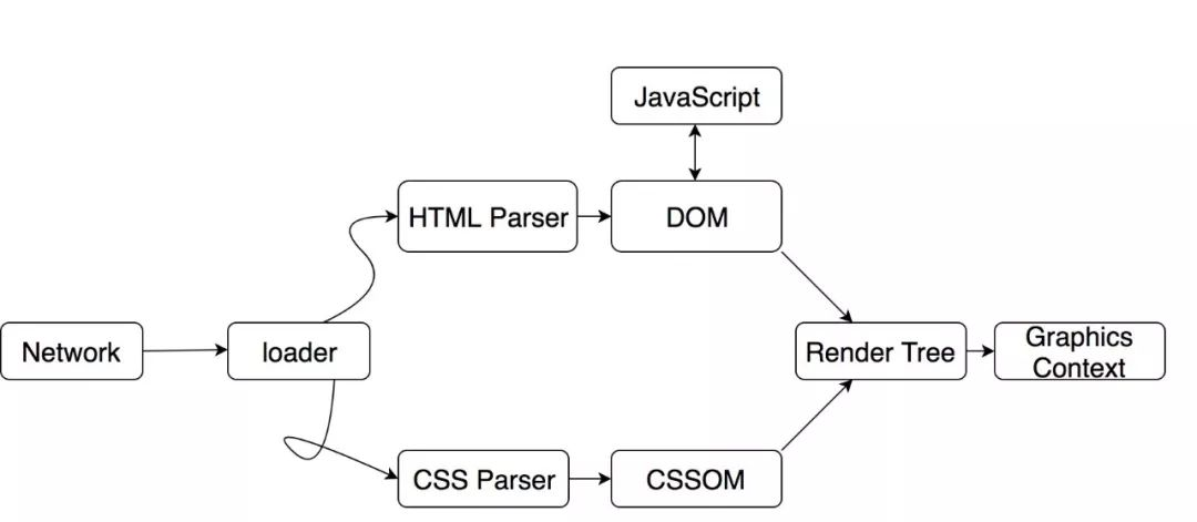首先浏览器通过URL定位到了一堆由HTML、CSS、JS组成的资源文件,通过加载器(这个加载器的实现也很复杂,在此不多赘述 )把资源文件给WebCore。之后HTML Parser会把HTML解析成DOM树,CSS Parser会把CSS解析成CSSOM树。最后把这两棵树合并,生成最终需要的渲染树,再经过布局,与具体WebKit Ports的渲染接口,把渲染树渲染输出到屏幕上,成为了最终呈现在用户面前的Web页面。