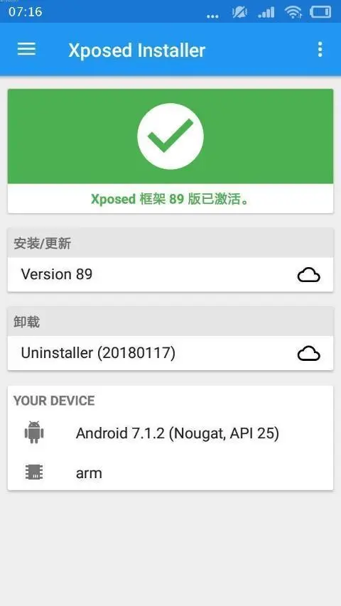 接下来小米5.0以上系统会自动进入重启进程,重启完后,我们再次打开Xposed框架,可以看到Xposed框架已经完美激活了。