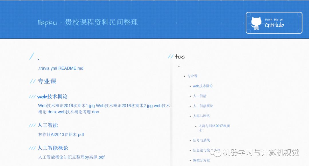原来是有人整理了这些学校的一些专业课程资料,并放到 Github 上了。这里让我一一简单介绍下这些项目!