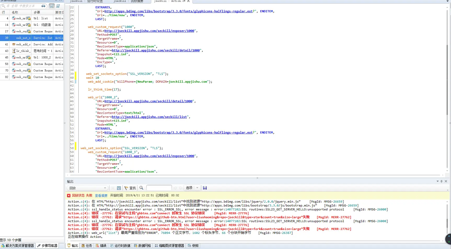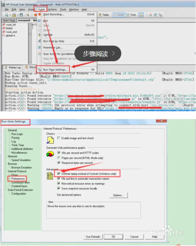 vuser->run-time settings->preferences->advanced里勾上WININET replay instead of Sockets