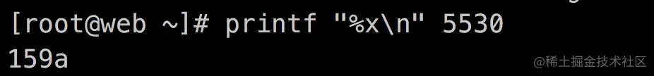 printf "%x\n" 5530