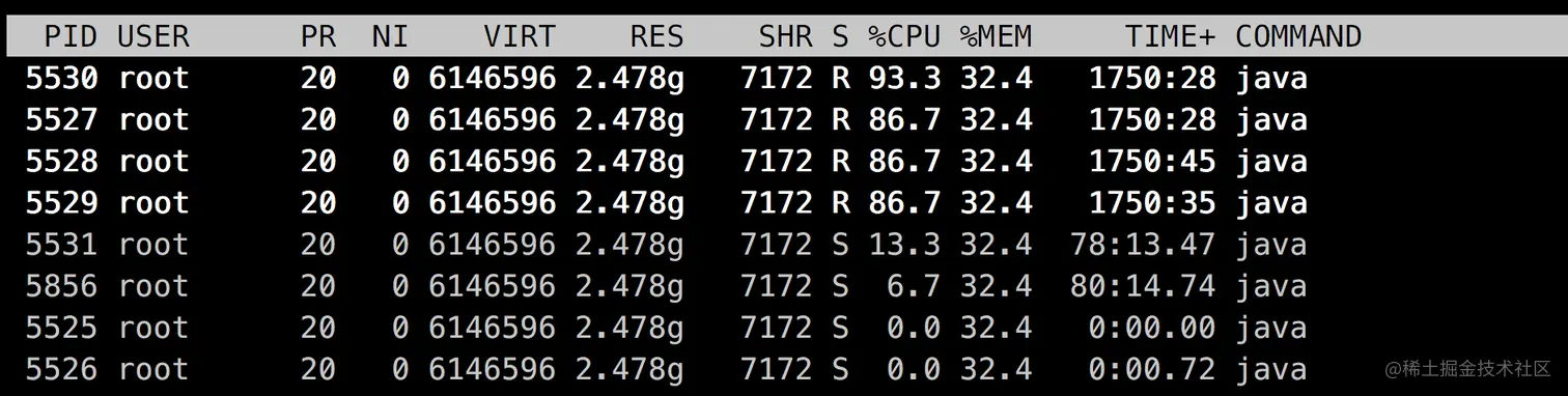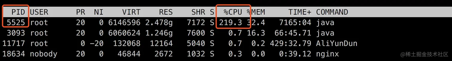 - 通过top命令查看进程使用状况