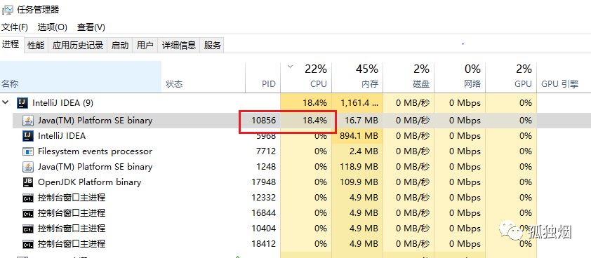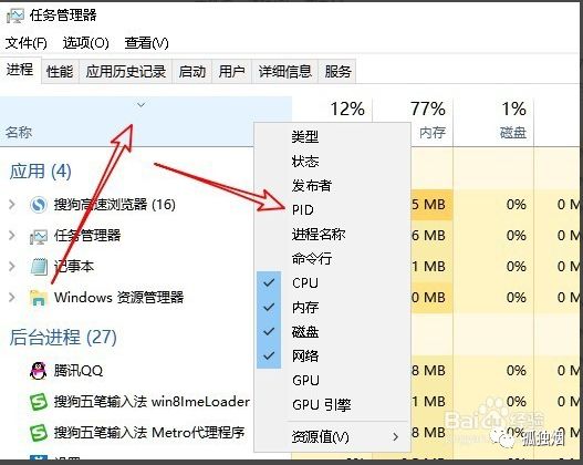 手边没有windows server机器,我以win 10为例,截图给大家看一下,先调出PID显示项!