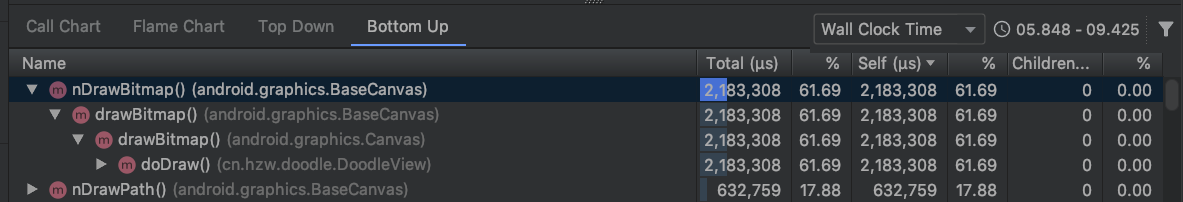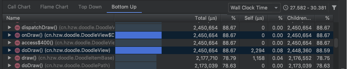 借助Android Studio的Profiler工具查看cpu的主要耗时在绘制方法里: