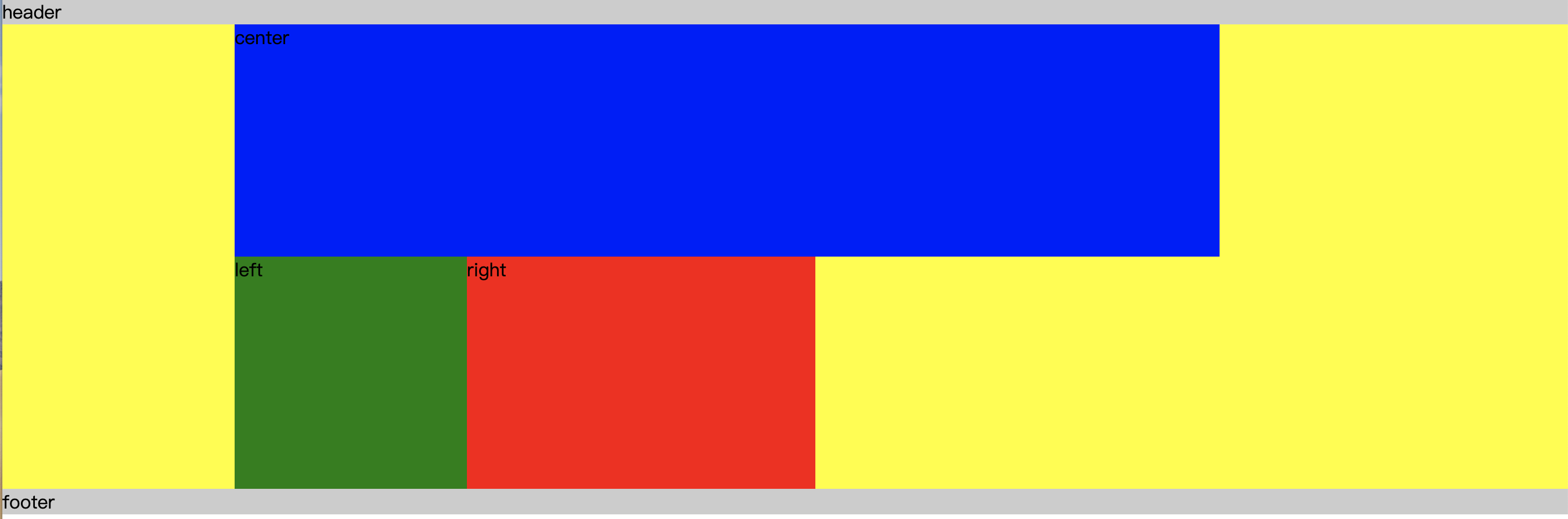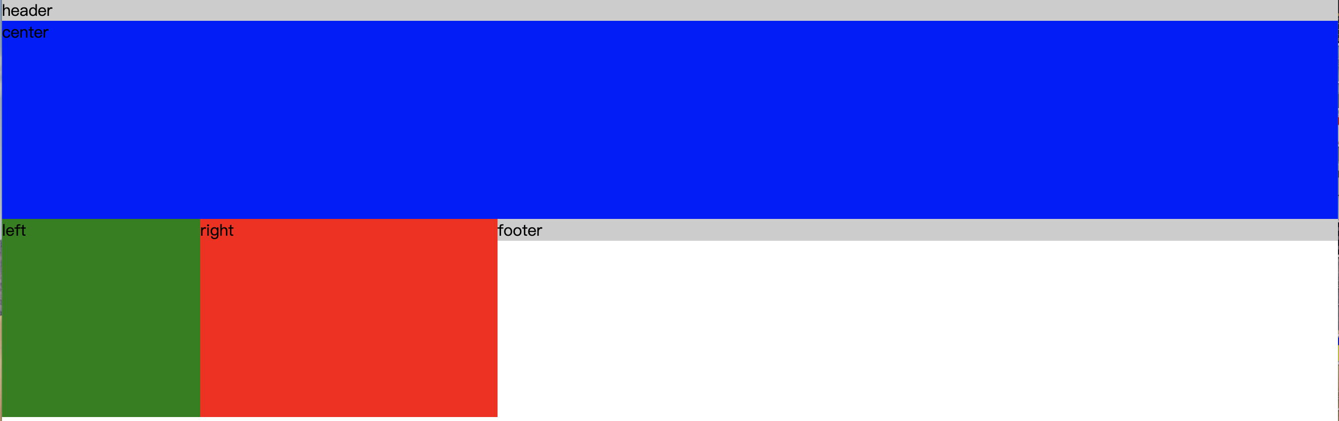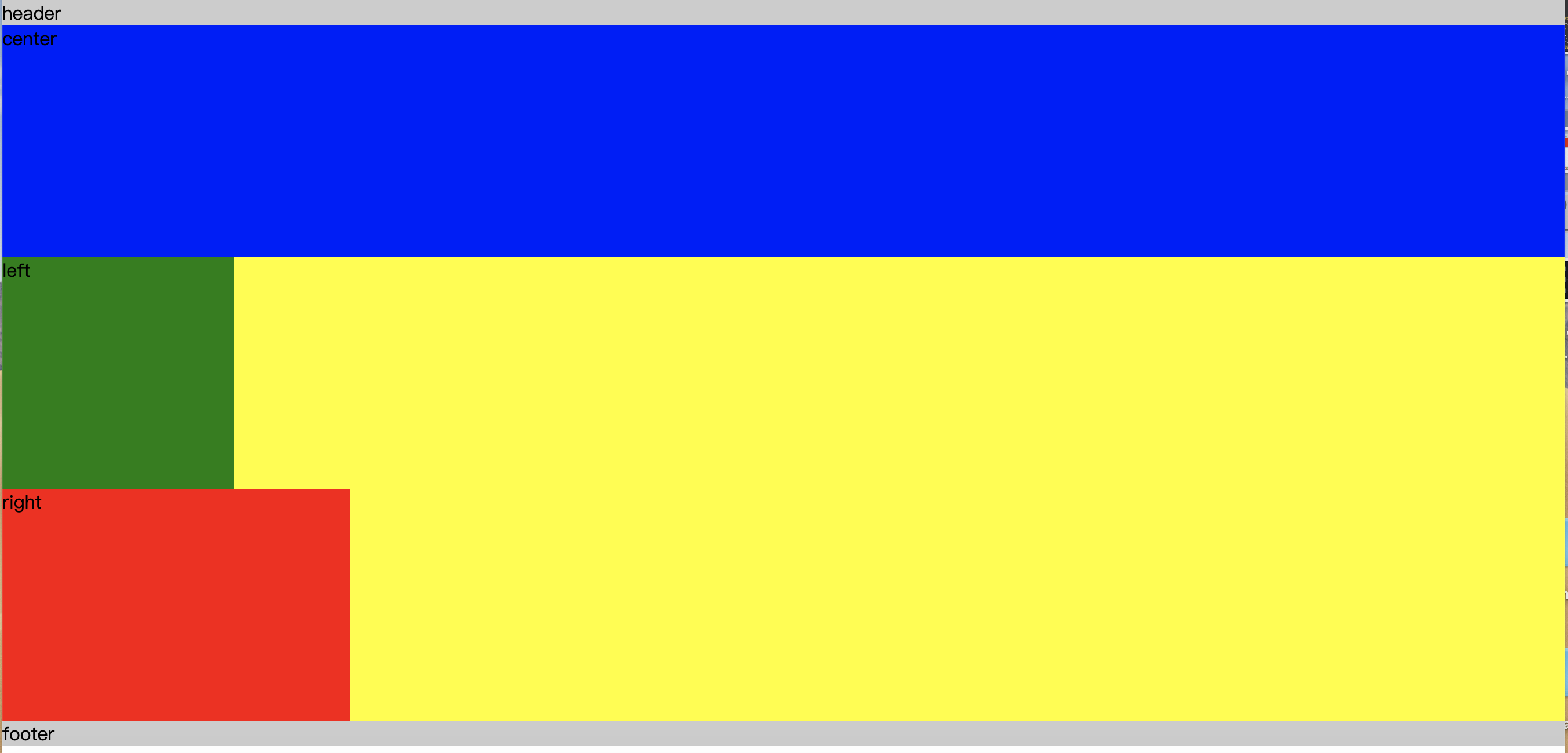 - center块放在left块前面是为了让center块更快加载出来(DOM加载是按顺序加载的)