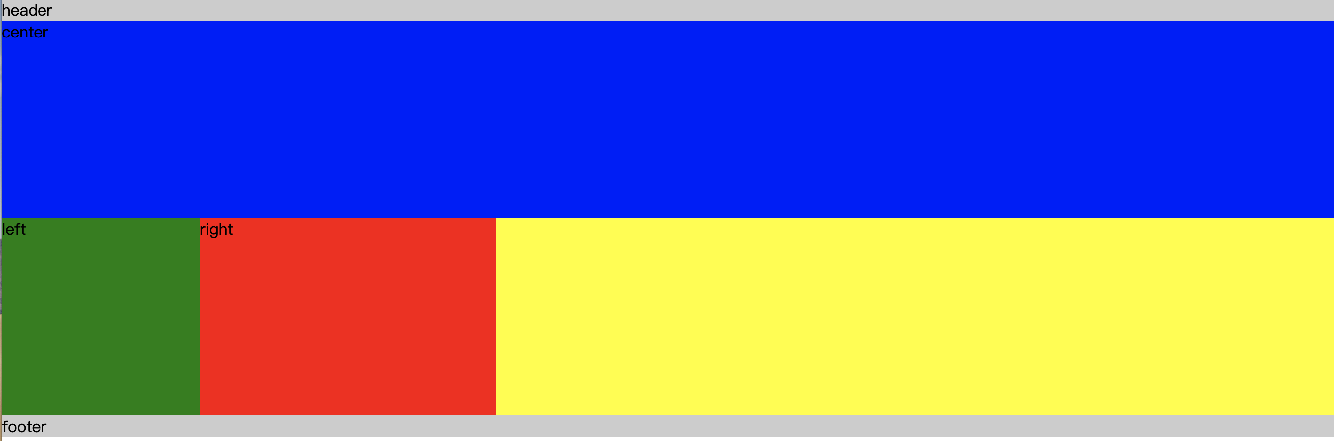 设置好header和footer的宽度是100%,左栏宽度200px,右栏宽度300px,中间栏宽度100%(因为要跟着浏览器的宽度变化)