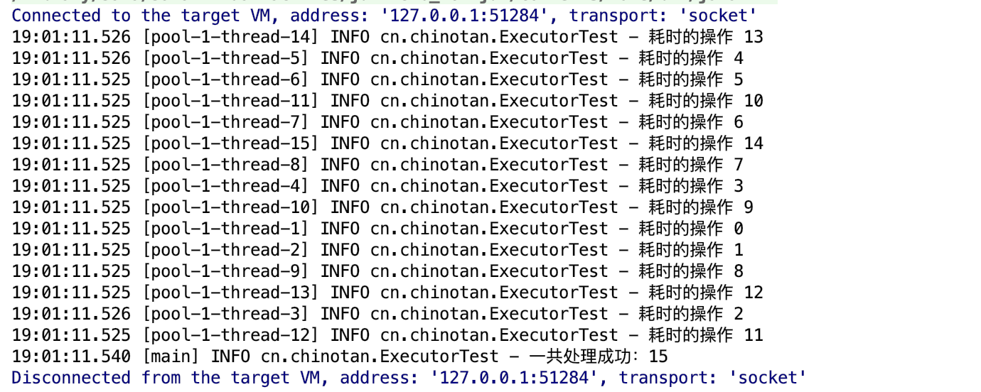 可以看到15个耗时的操作很快就并行执行完成,并且还能返回执行的成功结果数