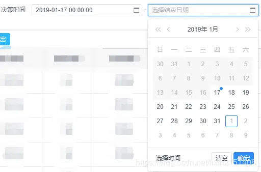 根据需求要求,要求选择日期范围为一个月:在选择了起始时间后,结束时间之内选择之后的一个月时间,到下个月17日