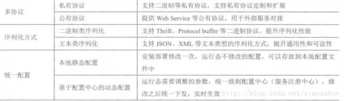 1)远程服务提供者需要以某种形式提供服务的调用相关信息,包括但是不限于服务接口定义,数据结构,或者中间态的服务定义文件服务调用者需要通过一定的途径获取远程服务的调用相关信息,例如接口的定义jar包等2) 远程代理对象:服务调用者调用的服务实际是远程服务的本地代理,对于java而言,他的实现就是jdk动态代理,通过动态代理拦截机制,将本地调用封装成远程服务调用3)通信:RPC框架与具体的协议无关,只要双方遵从约定好的即可,比如可以是http invoke,可以是rmi invoke,也可以是其他任意的二进制压缩协议4)序列化:远程通信,需要将对象转换成二进制数据进行网络传说,不同的所以需要将数据序列化,不同的序列化框架支持的数据类型,数据包大小,异常类型或者性能都不同不同的RPC框架针对的场景不同,因此技术选择也各不相同,一些框架支持多种序列化框架,甚至支持用户自定义序列化框架