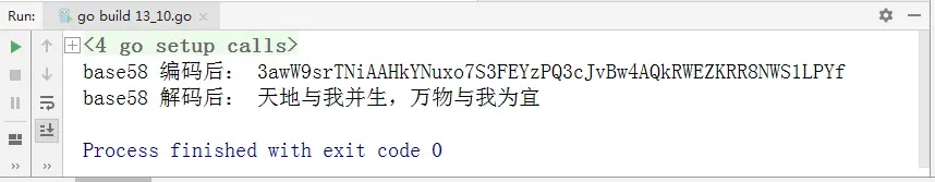 接下来通过一个案例演示Base58编码解码,如例所示。
