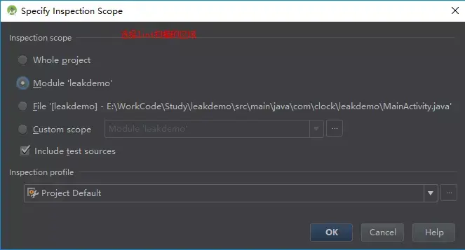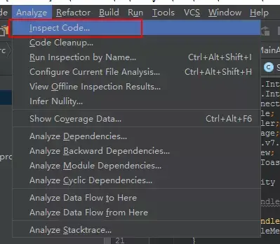 Lint 是 Android Studio 自带的工具,使用姿势很简单 Analyze -> Inspect Code 然后选择想要扫面的区域即可