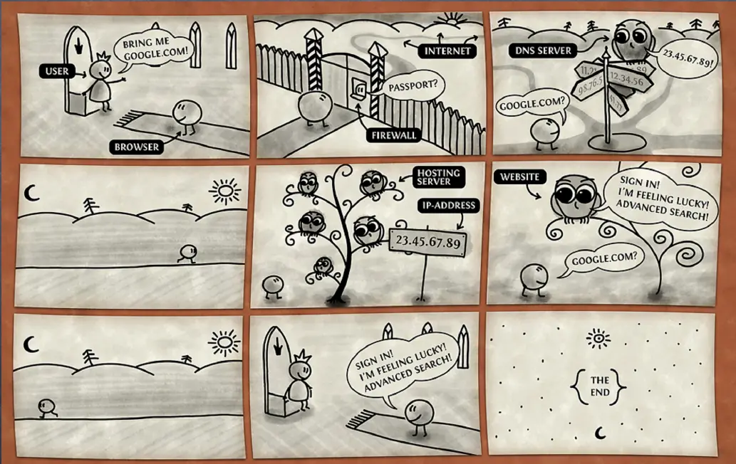 第三步 google.com这是一个字符串,浏览器是不认识这个字符串的 它需要把这个字符串转化为 IP地址,这个时候它就去请问 DNS 服务器 ,找到对应的IP地址(Ipv4协议)。google.com相当于是一个名字,除了你自己没人知道具体地址在哪,而IP地址则是一个具体的门牌号,这样浏览器就知道往哪走了。