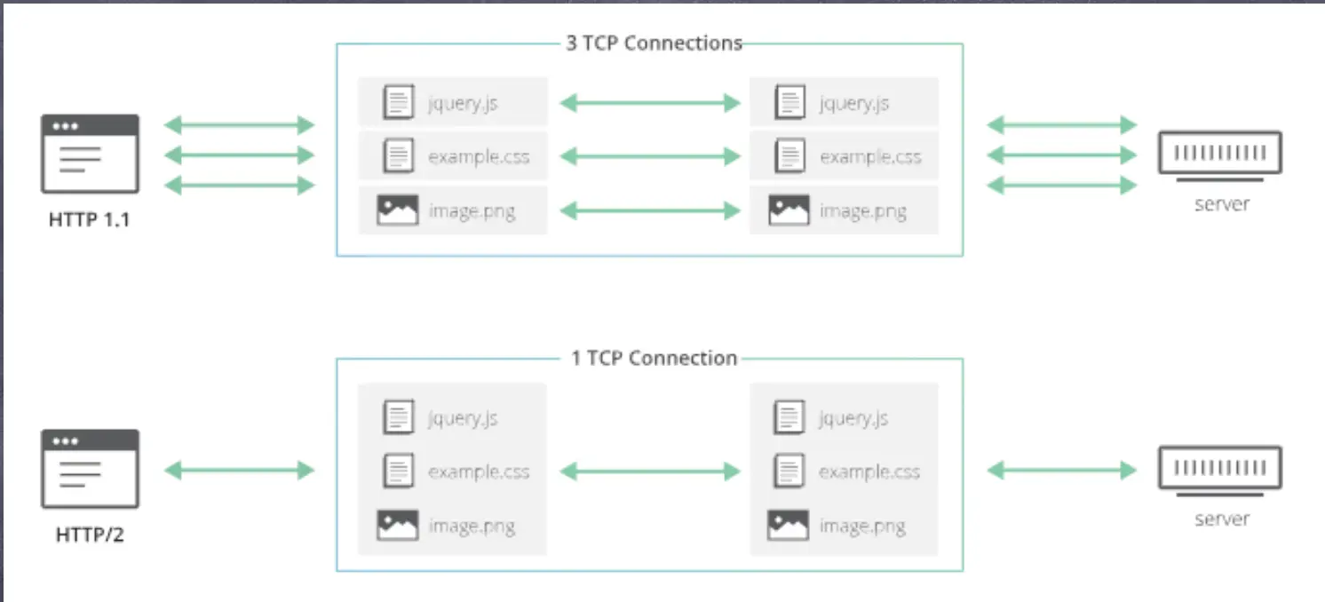 - 多路复用,一个网络连接实现并行请求