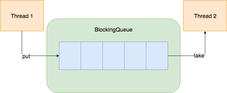这是一个两个线程通过阻塞队列协作的示例图: