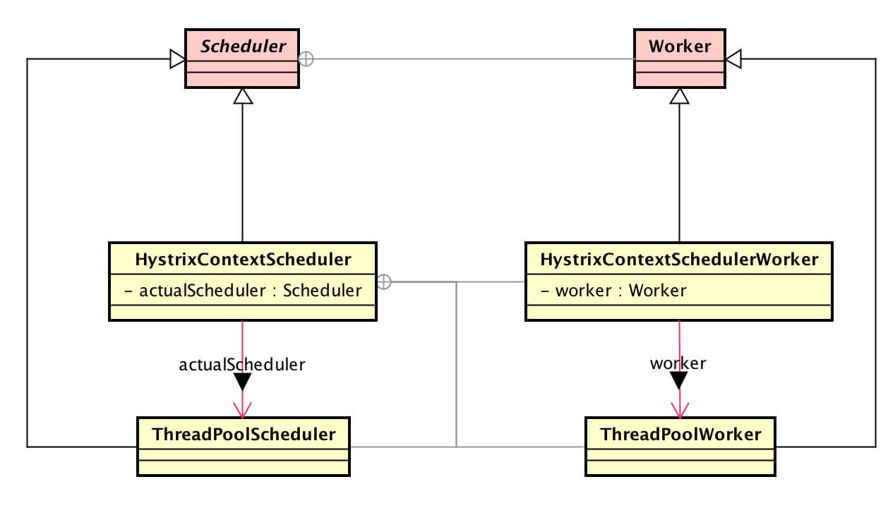 Hystrix 实现了自定义的 RxJava Scheduler ,整体类图如下 :