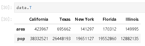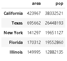 pop = pd.Series({'California':38332521,'Texas':26448193,'New York':19651127,'Florida':19552860,'Illinois':12882135})