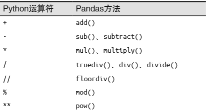 A = rng.randint(10,size=(3,4)) df = pd.DataFrame(A,columns=list'QPST') df - df.iloc[0] #默认按行计算 df.subtract(df['R'],axis=0) #通过axis参数指定按列计算