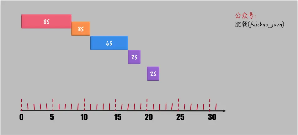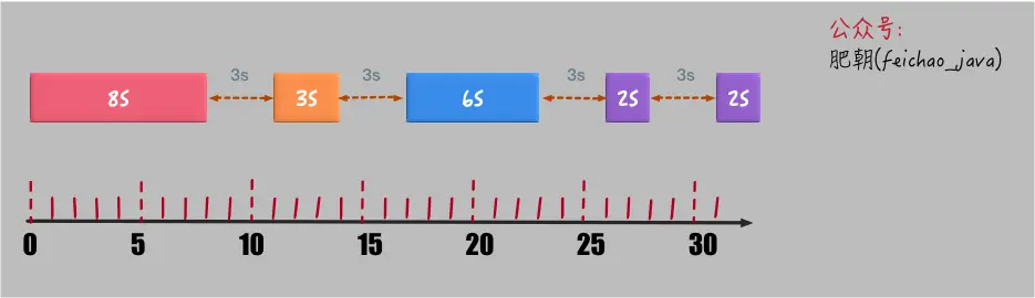 第二个同学本来应该在第5秒的时候就进去的,结果第一个同学出来的时候,已经是第8秒了,那么舍长就赶紧催第二个同学进去,把时间进度追回来.